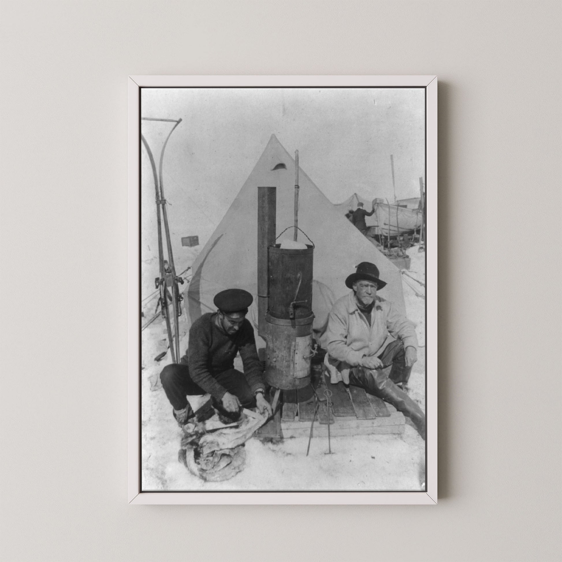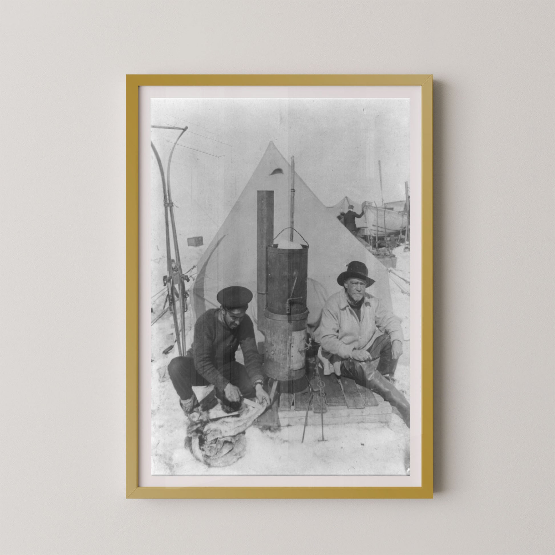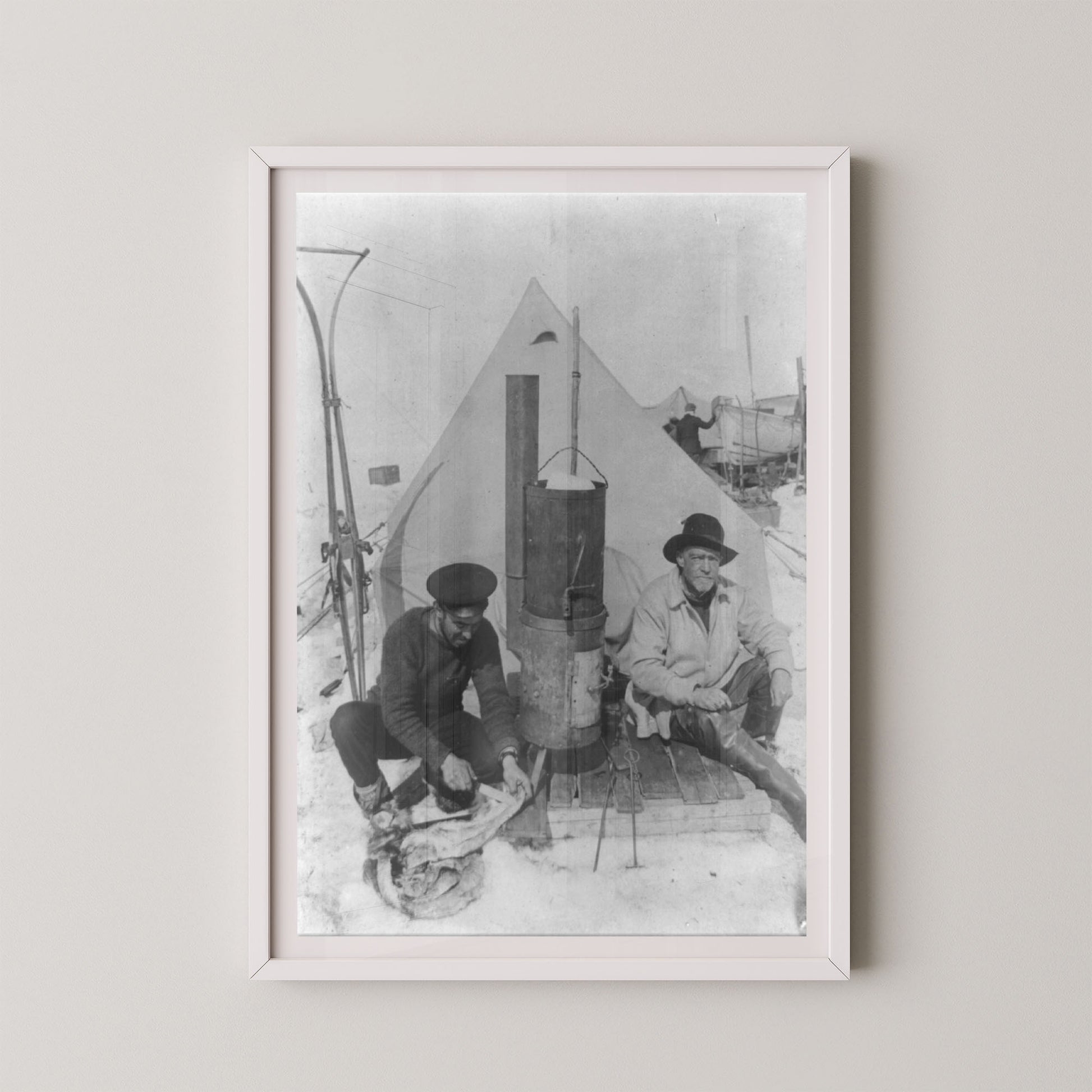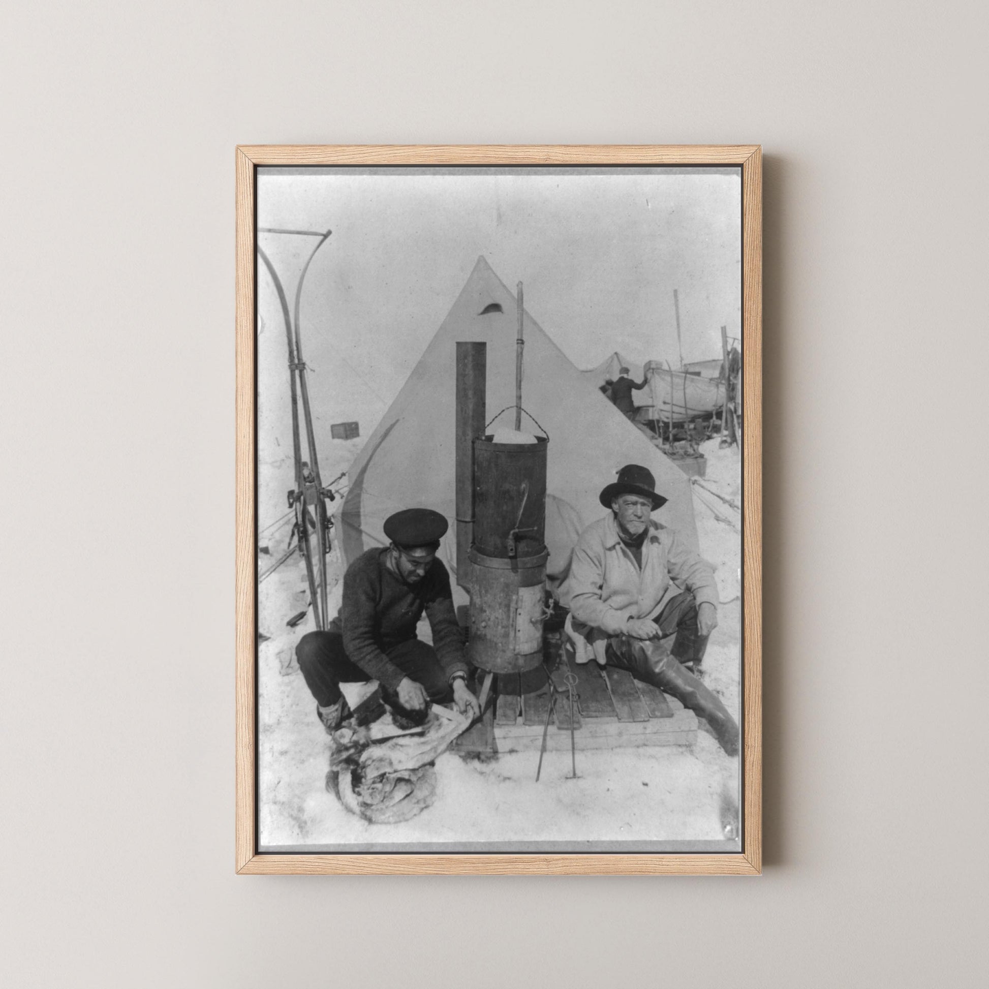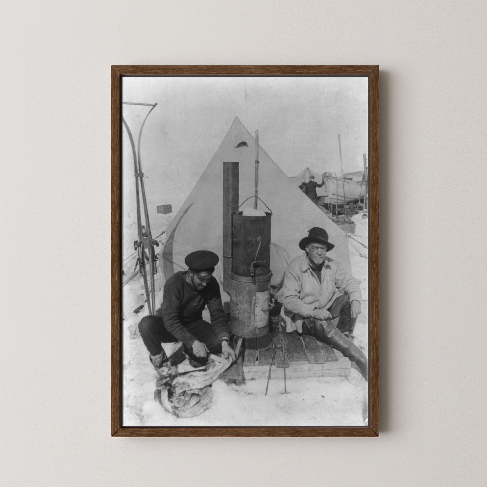 Capture the rugged spirit of adventure with At Camp, a timeless black-and-white photograph that tells the story of endurance, exploration, and camaraderie. Set against a stark winter landscape, this striking image embodies the grit and quiet resilience of life lived on the edge of the elements — a visual ode to courage and connection.