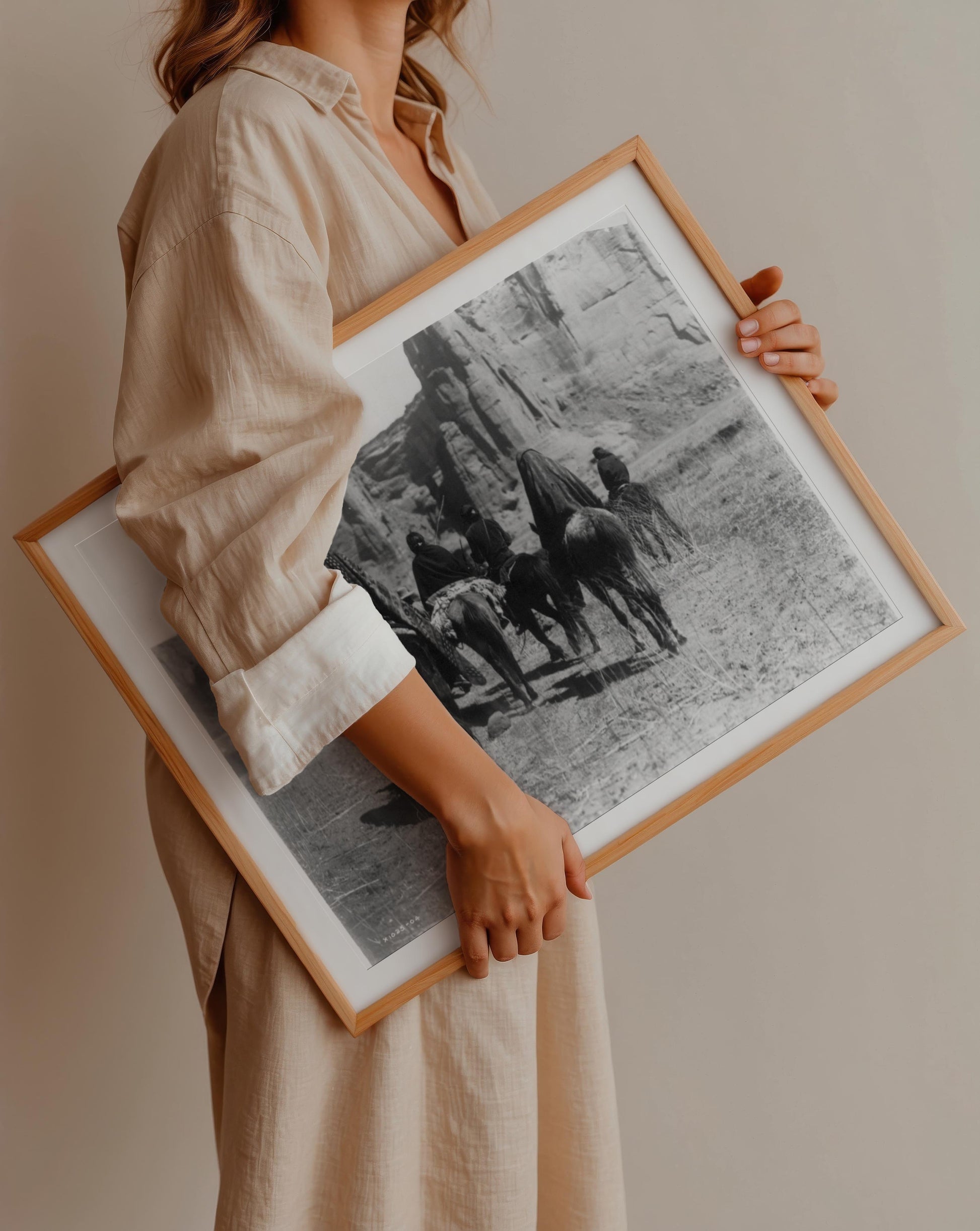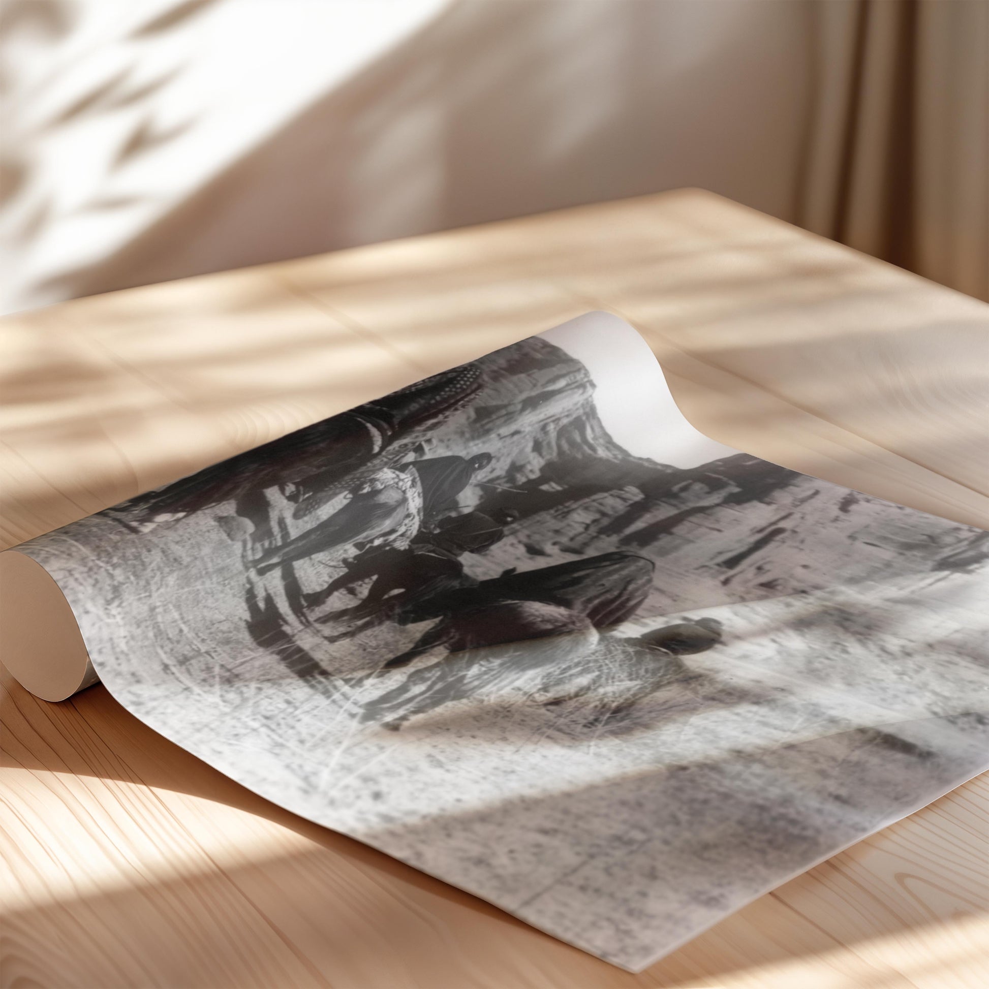 Step back in time with Desert Walk, a stunning black-and-white fine art photograph capturing the quiet strength and enduring traditions of life in the desert. Featuring riders on horseback journeying through breathtaking rock formations, this piece evokes a sense of history, resilience, and connection to the land.