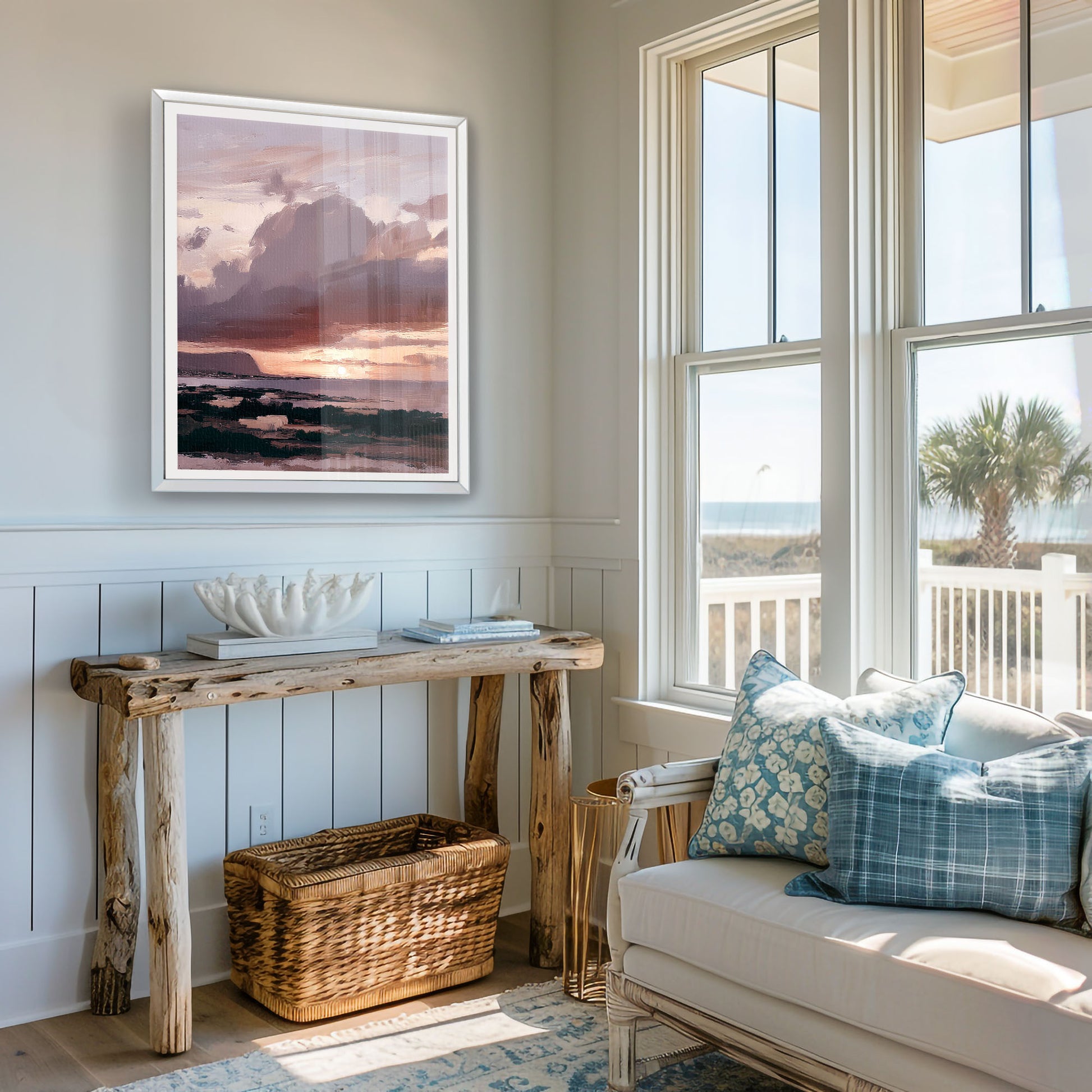 Whether styled on its own or layered with other coastal and landscape works, Dreams of Sicily brings a sense of calm, nostalgia, and quiet luxury to any space.