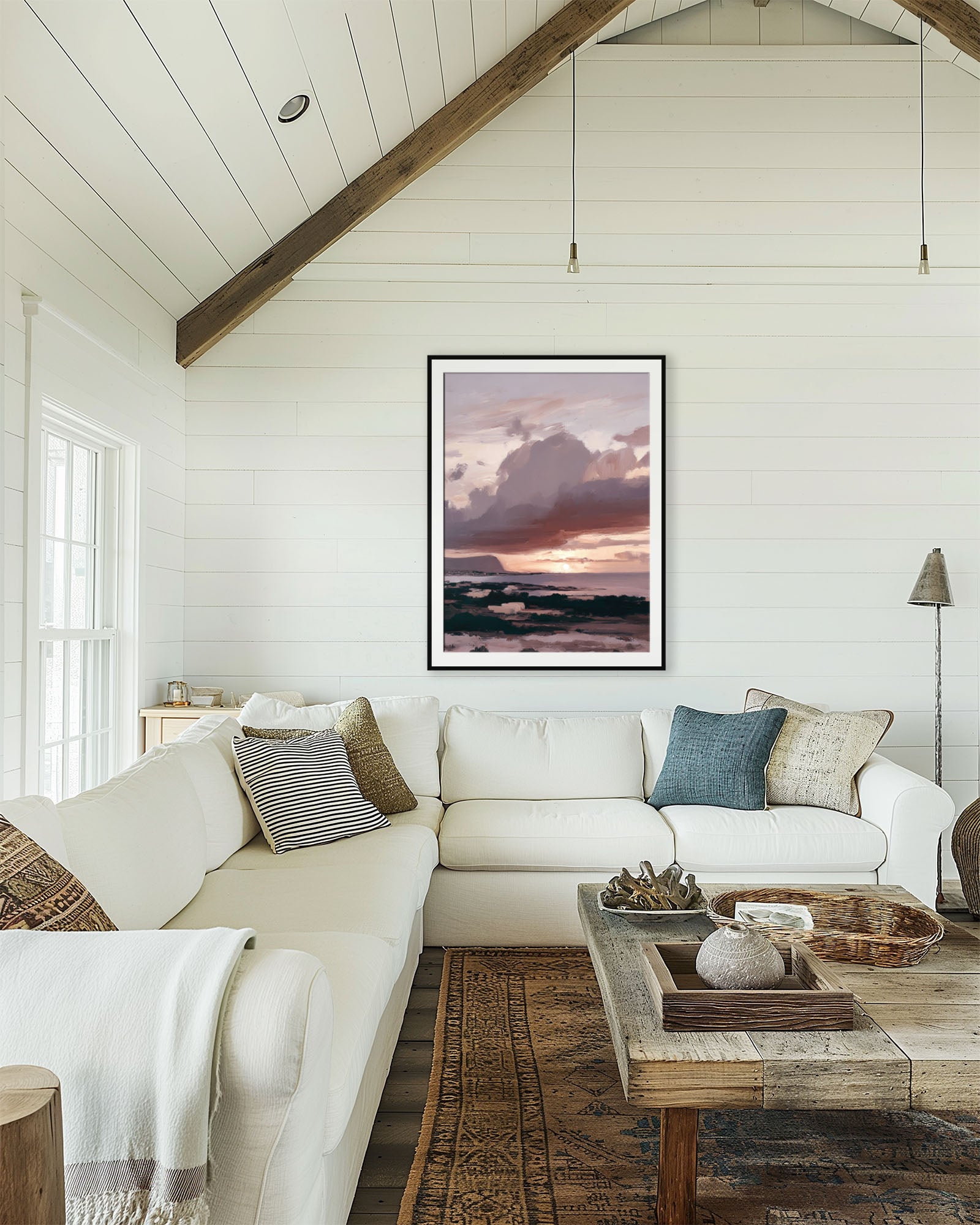 - Muted sunset palette designed to complement neutral interiors.
