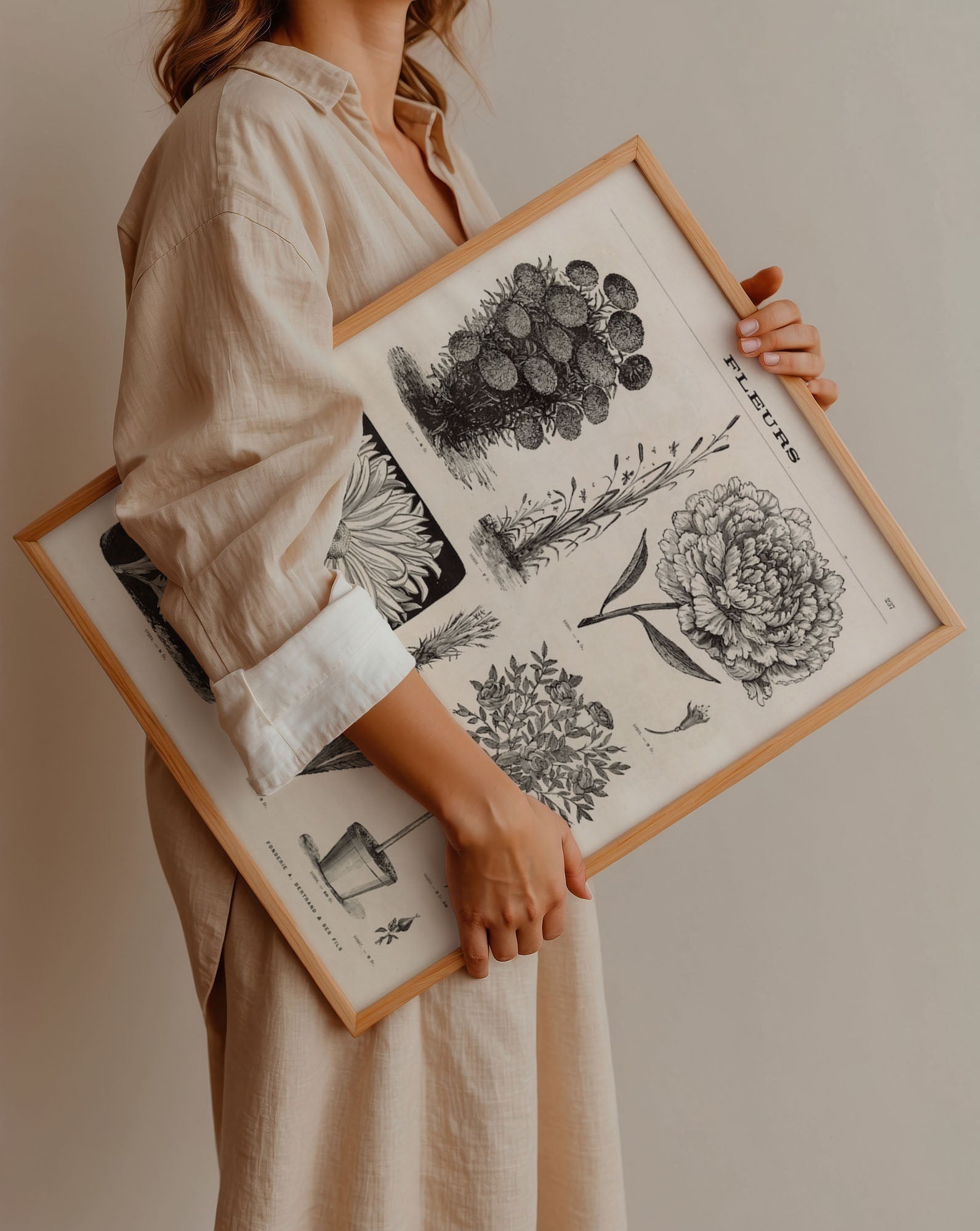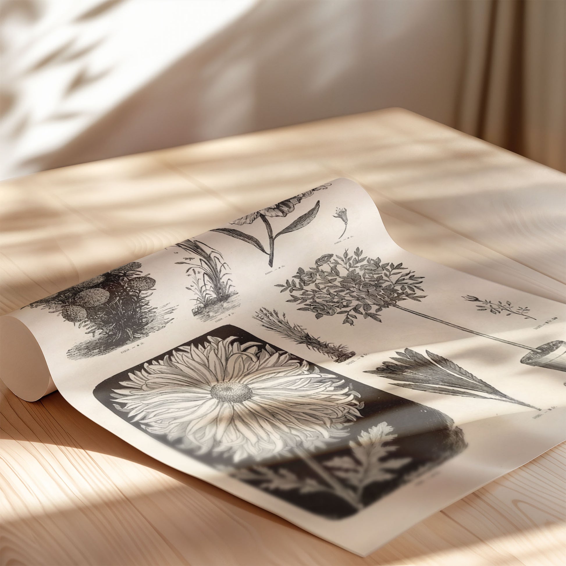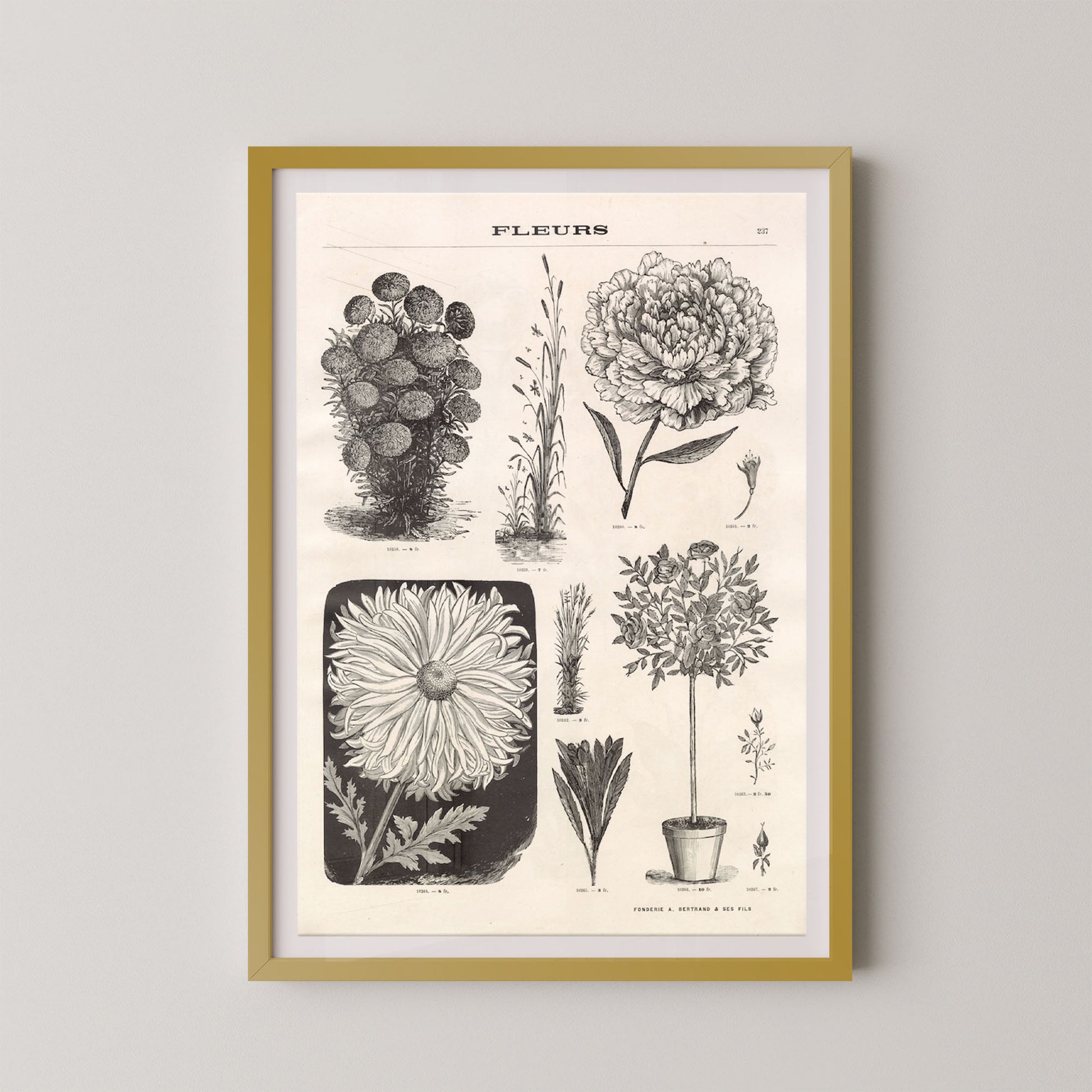 Bring classic elegance to your walls with Fleurs Botanical, a stunning reproduction of a vintage French floral illustration. This 19th-century botanical print features intricate engravings of peonies, daisies, and wild blooms, each rendered with exquisite linework and labeled in charming antique typography — a timeless nod to art, science, and natural beauty.