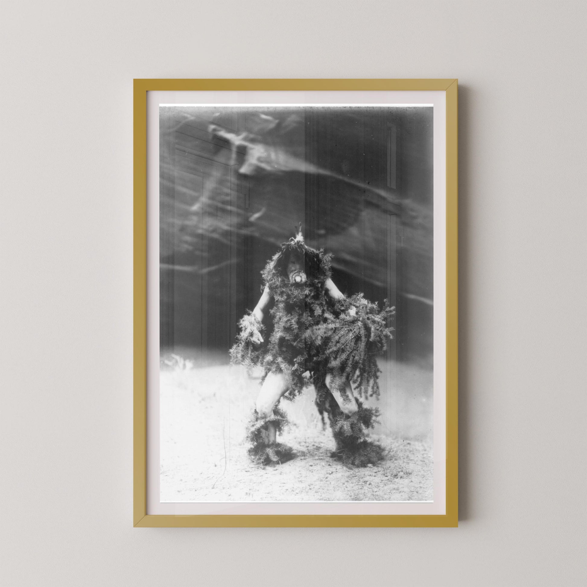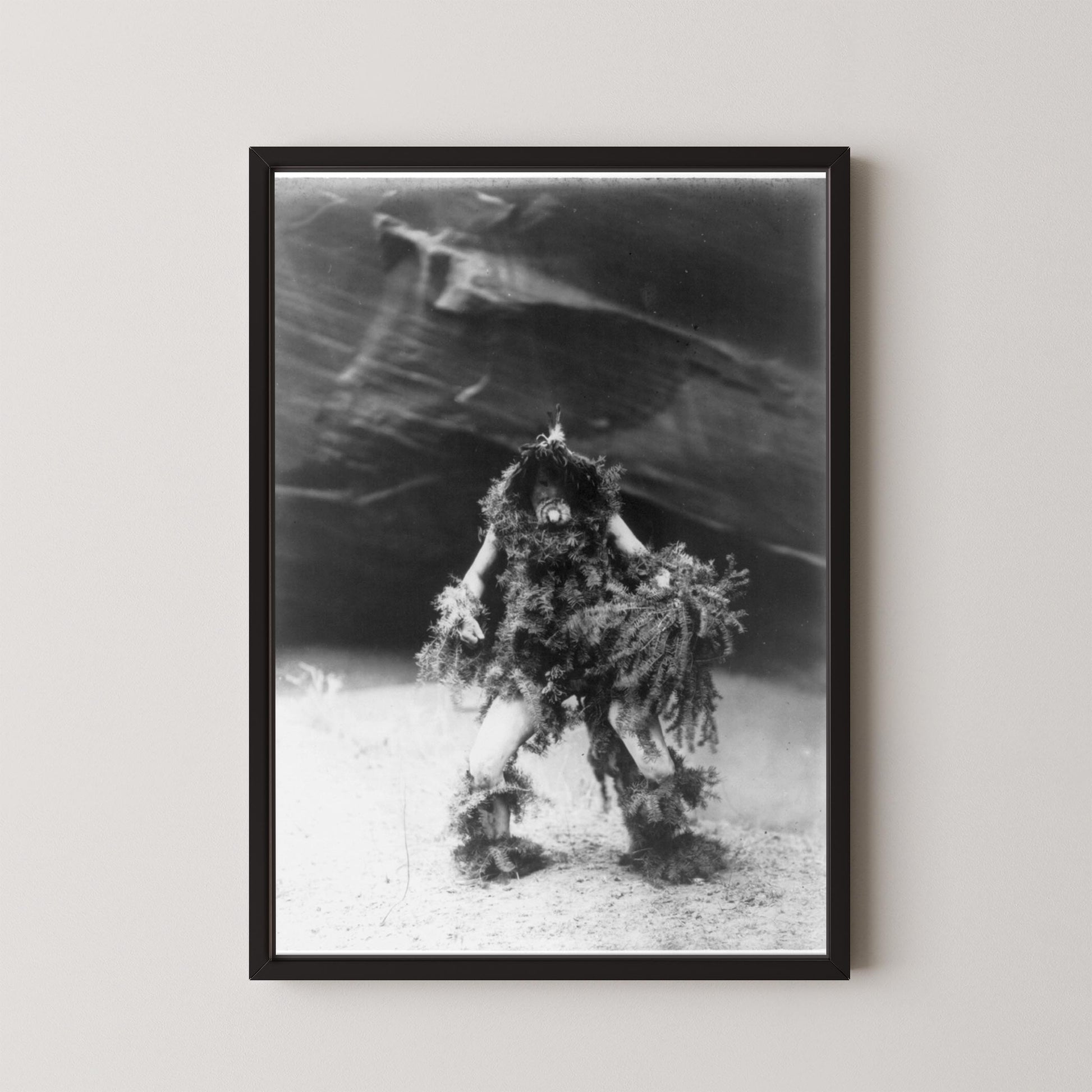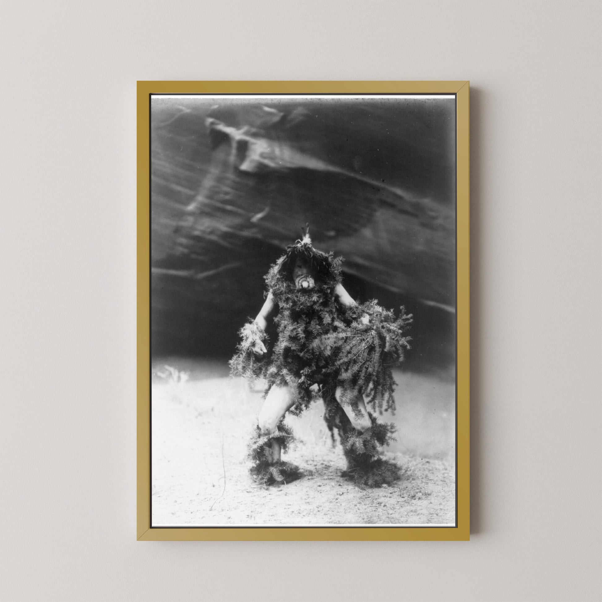 Gaaskidi II is an evocative black-and-white fine art photograph that captures both mystery and craftsmanship. The image’s dramatic lighting and textured detail highlight a ceremonial figure adorned with fur and natural materials, evoking the sacred connection between spirit, nature, and artistry. Its haunting beauty makes it a compelling centerpiece in any collection.