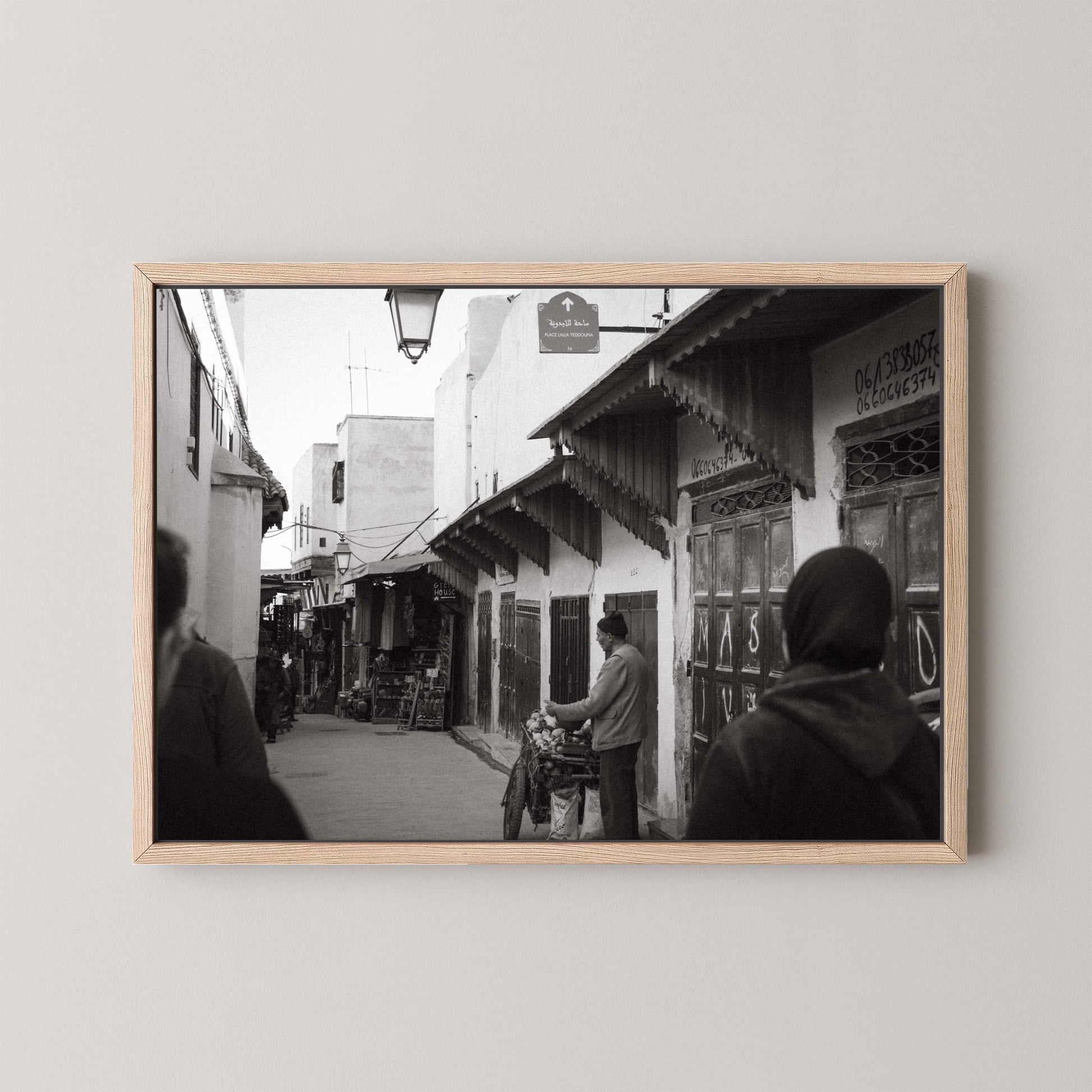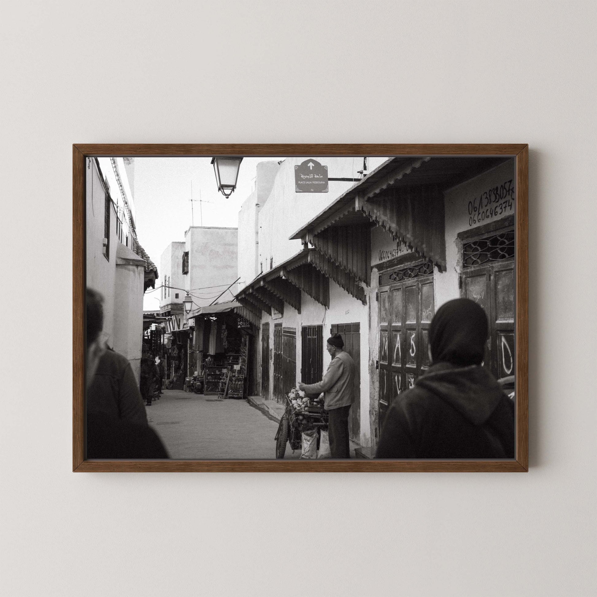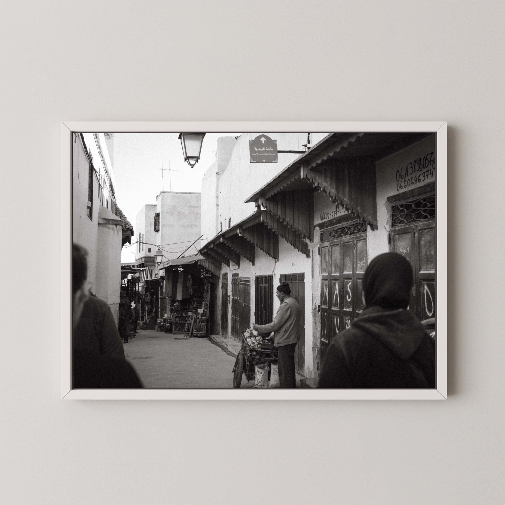 "Moody Market" – Black and White Moroccan Street Photography Print