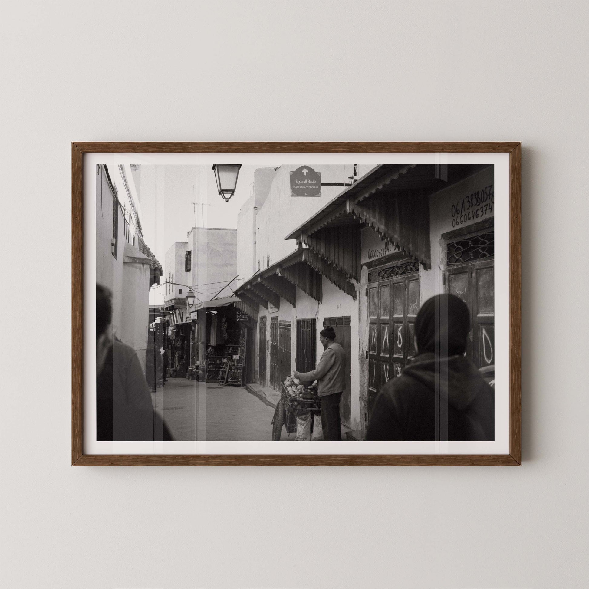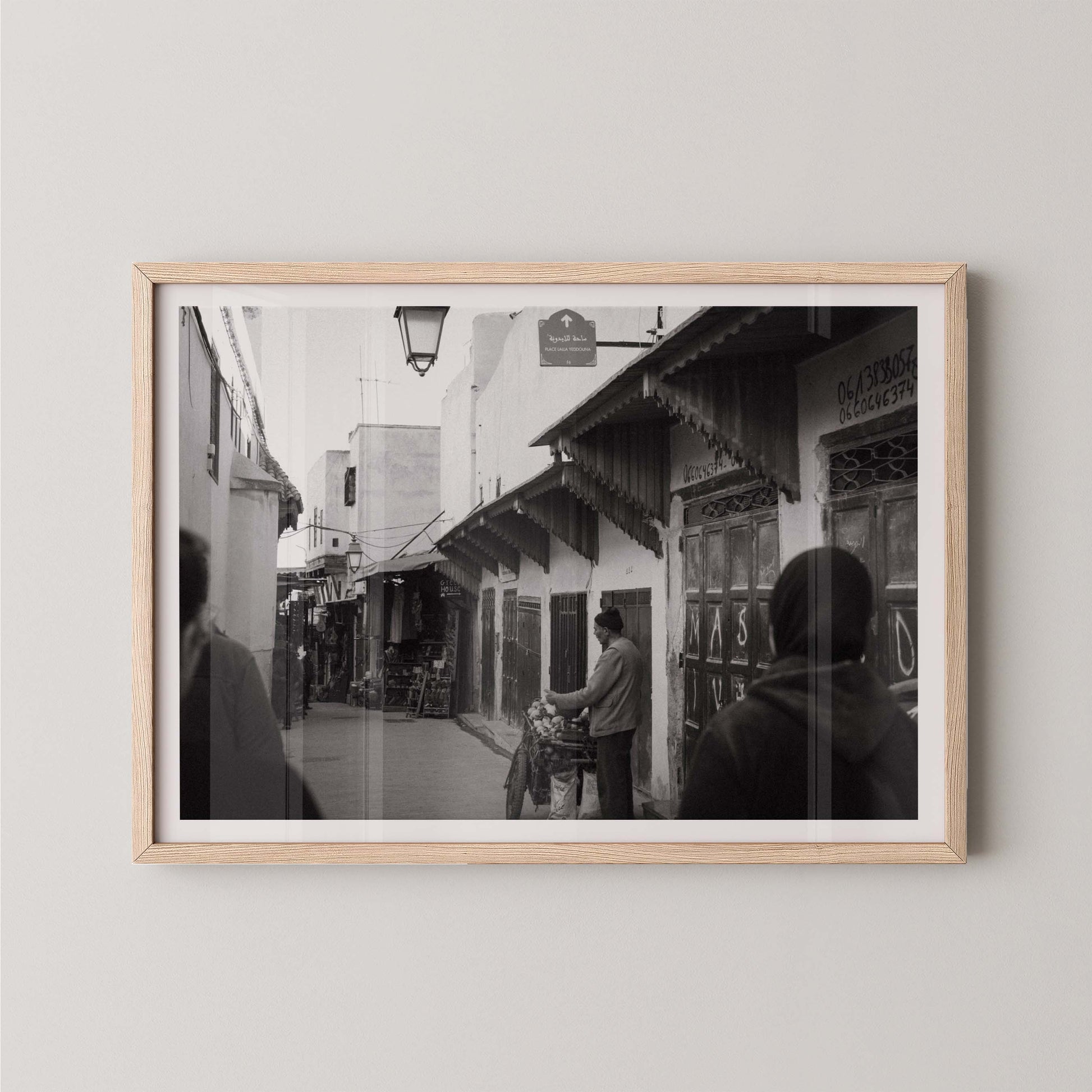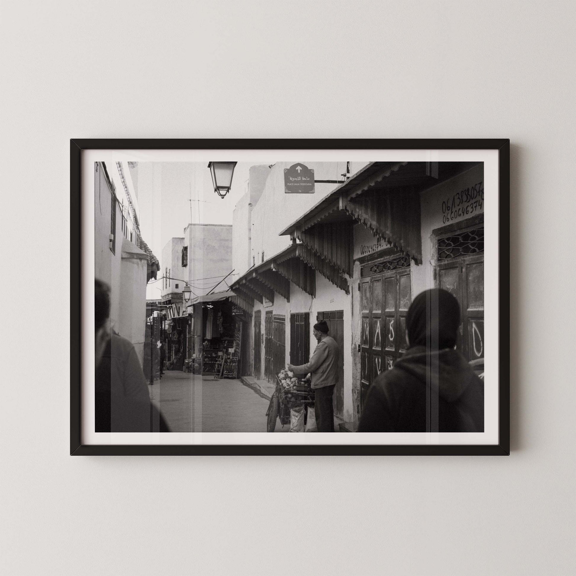 "Moody Market" – Black and White Moroccan Street Photography Print