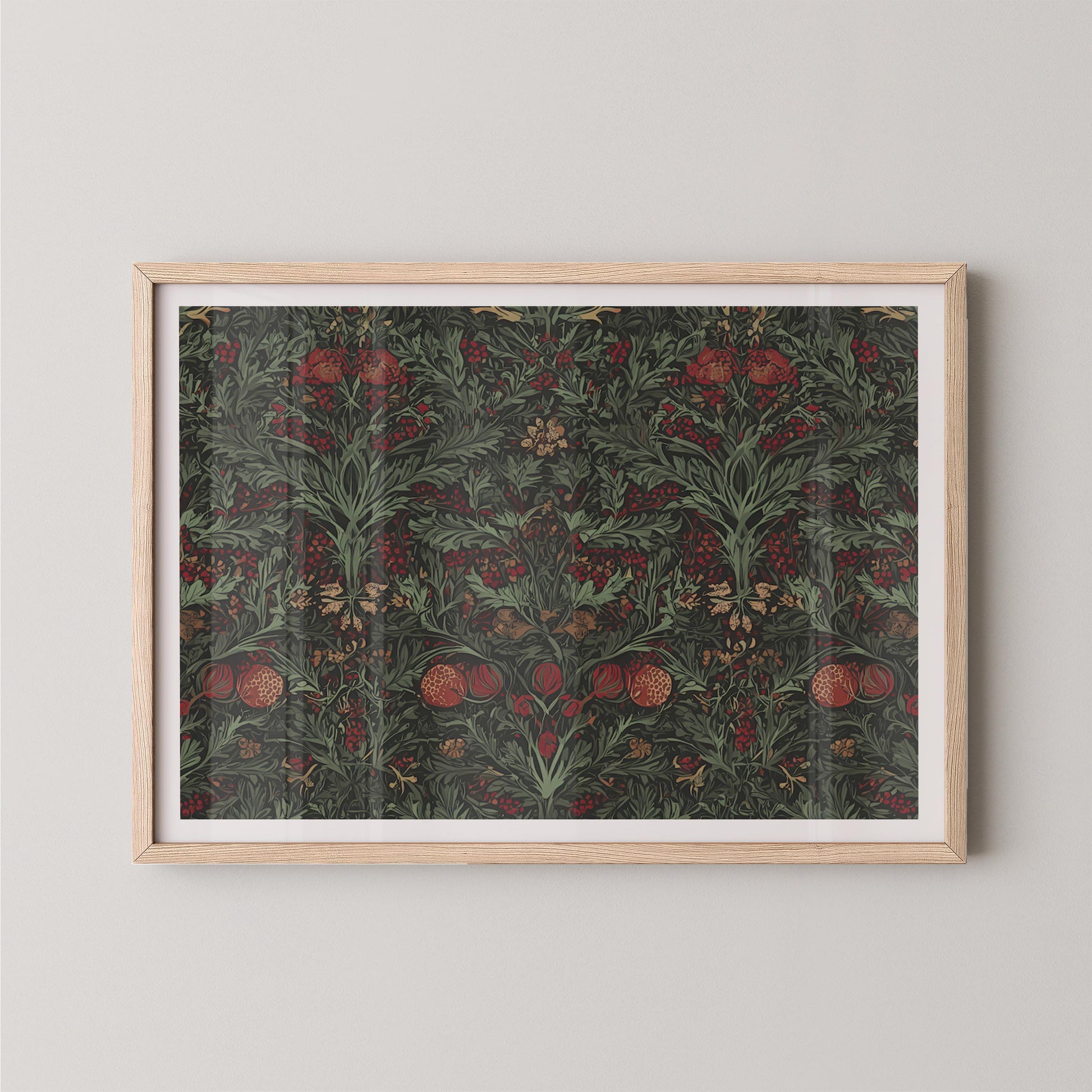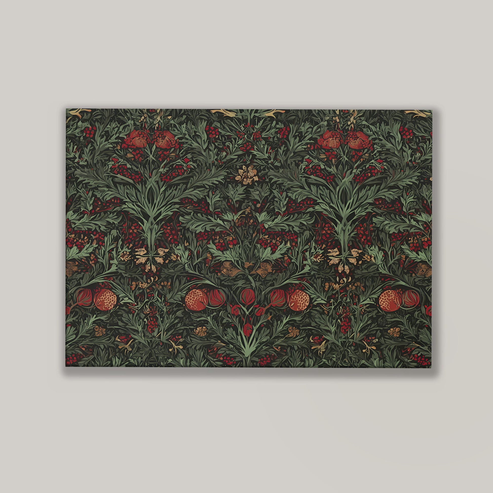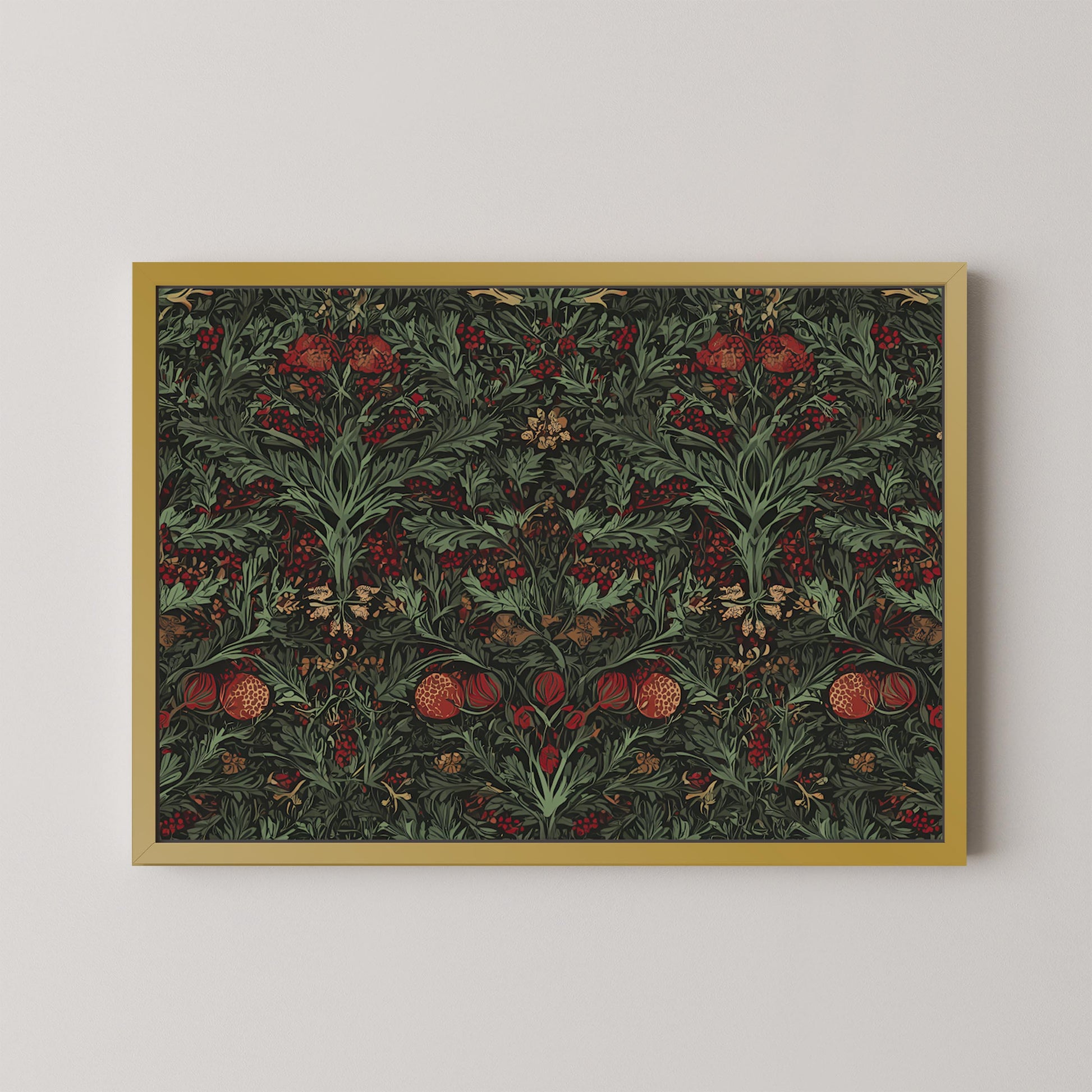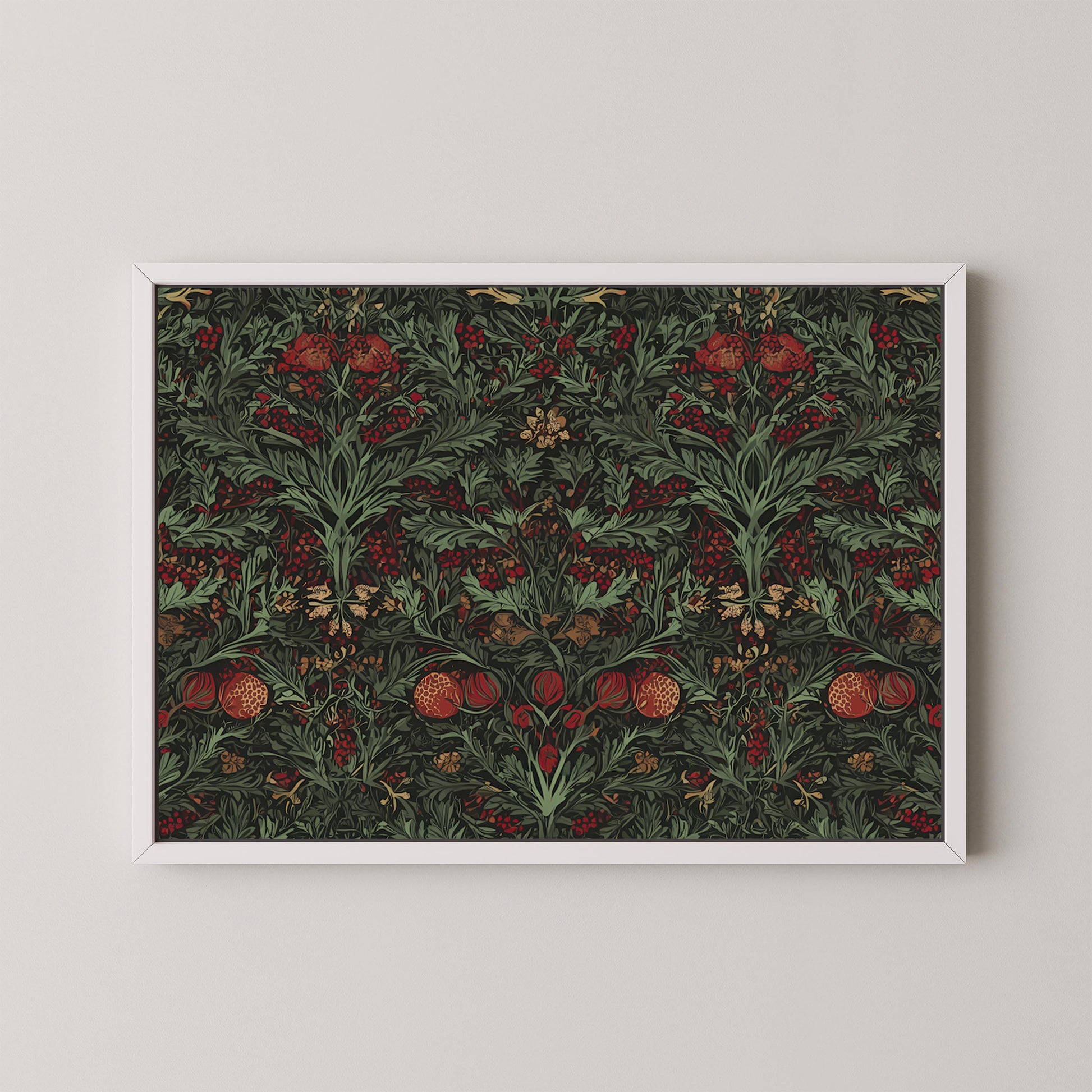 Rich in heritage and holiday spirit, Morris Christmas IV is a stunning art print inspired by William Morris’s timeless botanical patterns. Deep greens, pomegranate reds, and gold accents create a festive tapestry that feels both historic and refined — a perfect nod to the Victorian Christmas aesthetic.