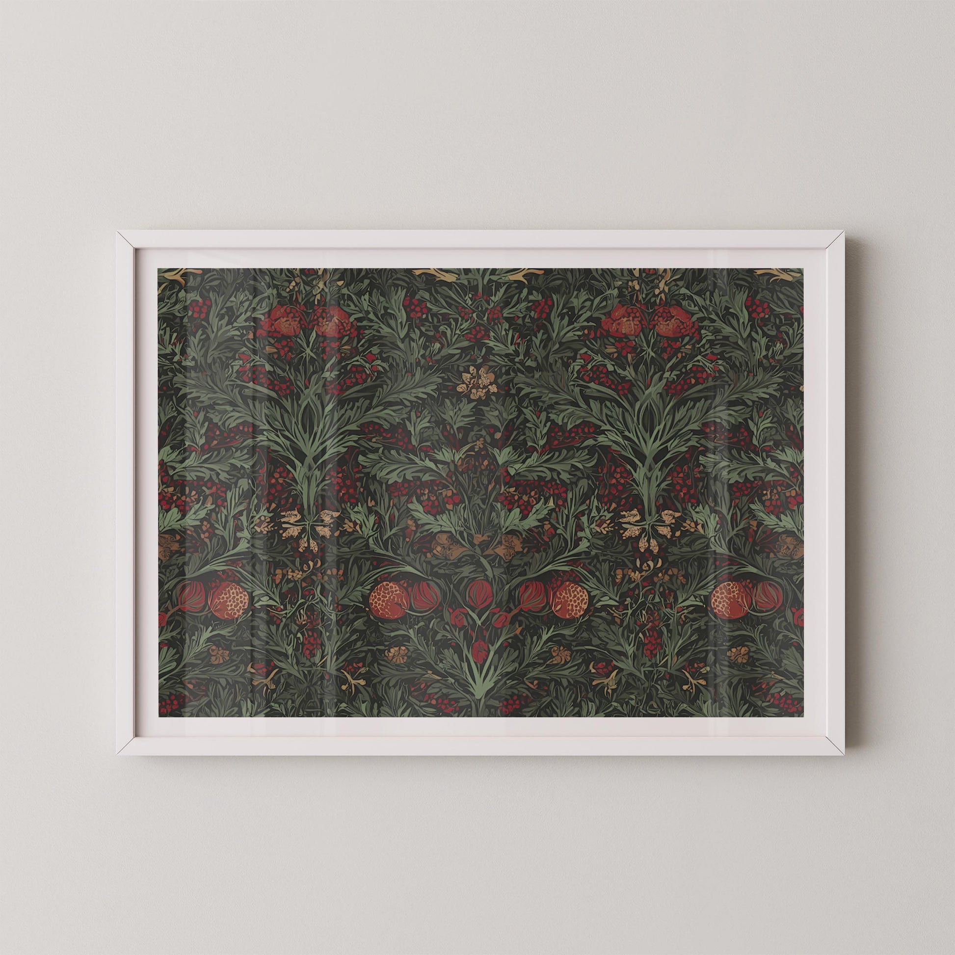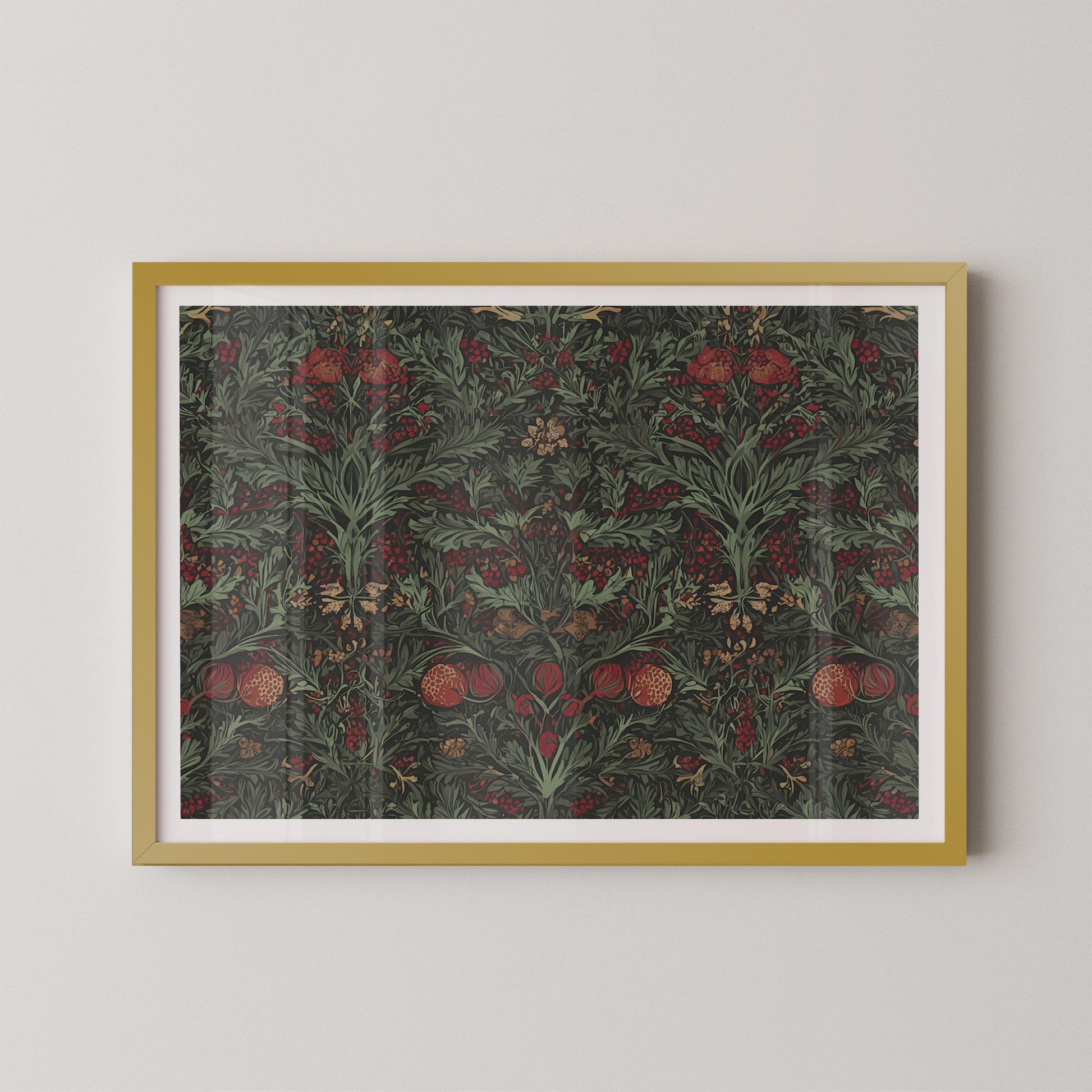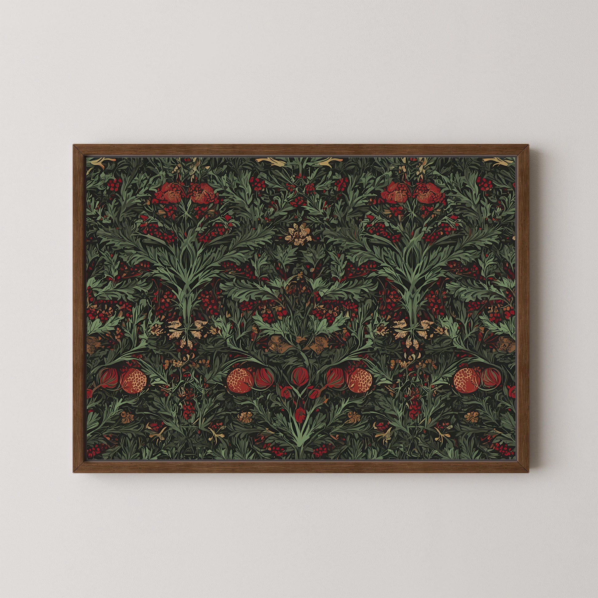 Rich in heritage and holiday spirit, Morris Christmas IV is a stunning art print inspired by William Morris’s timeless botanical patterns. Deep greens, pomegranate reds, and gold accents create a festive tapestry that feels both historic and refined — a perfect nod to the Victorian Christmas aesthetic.
