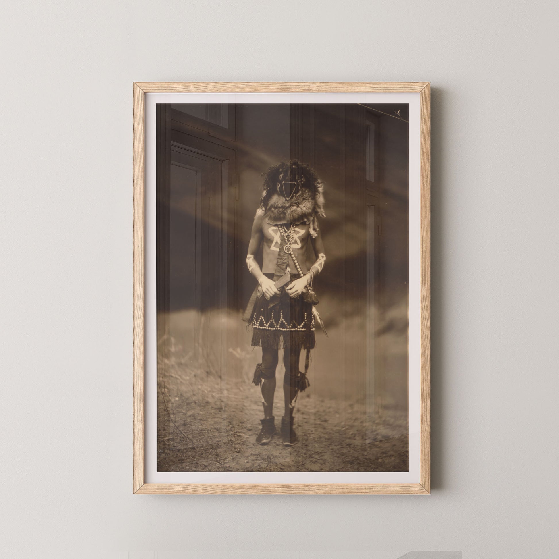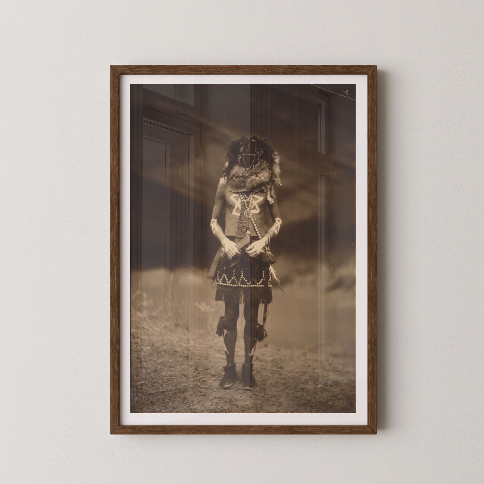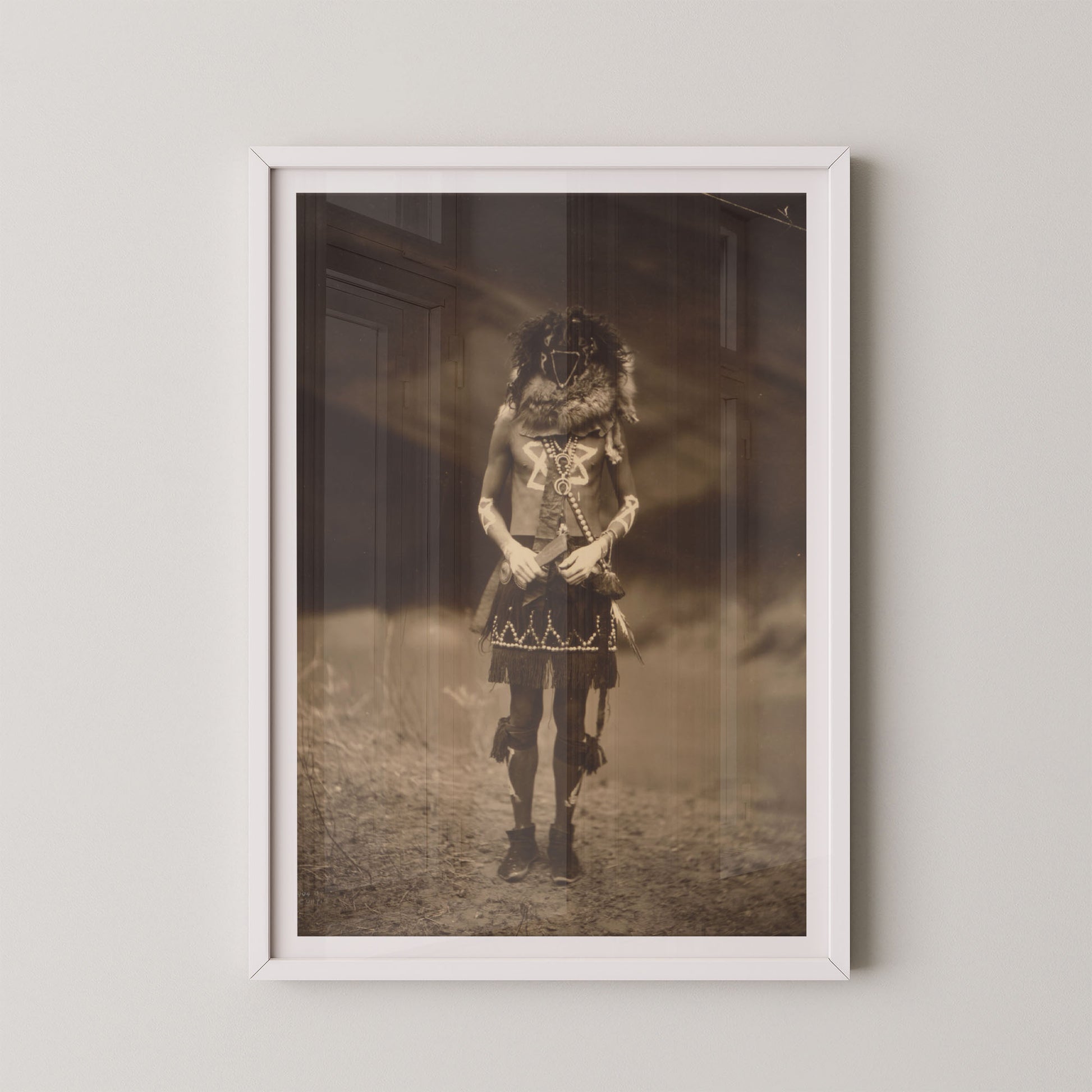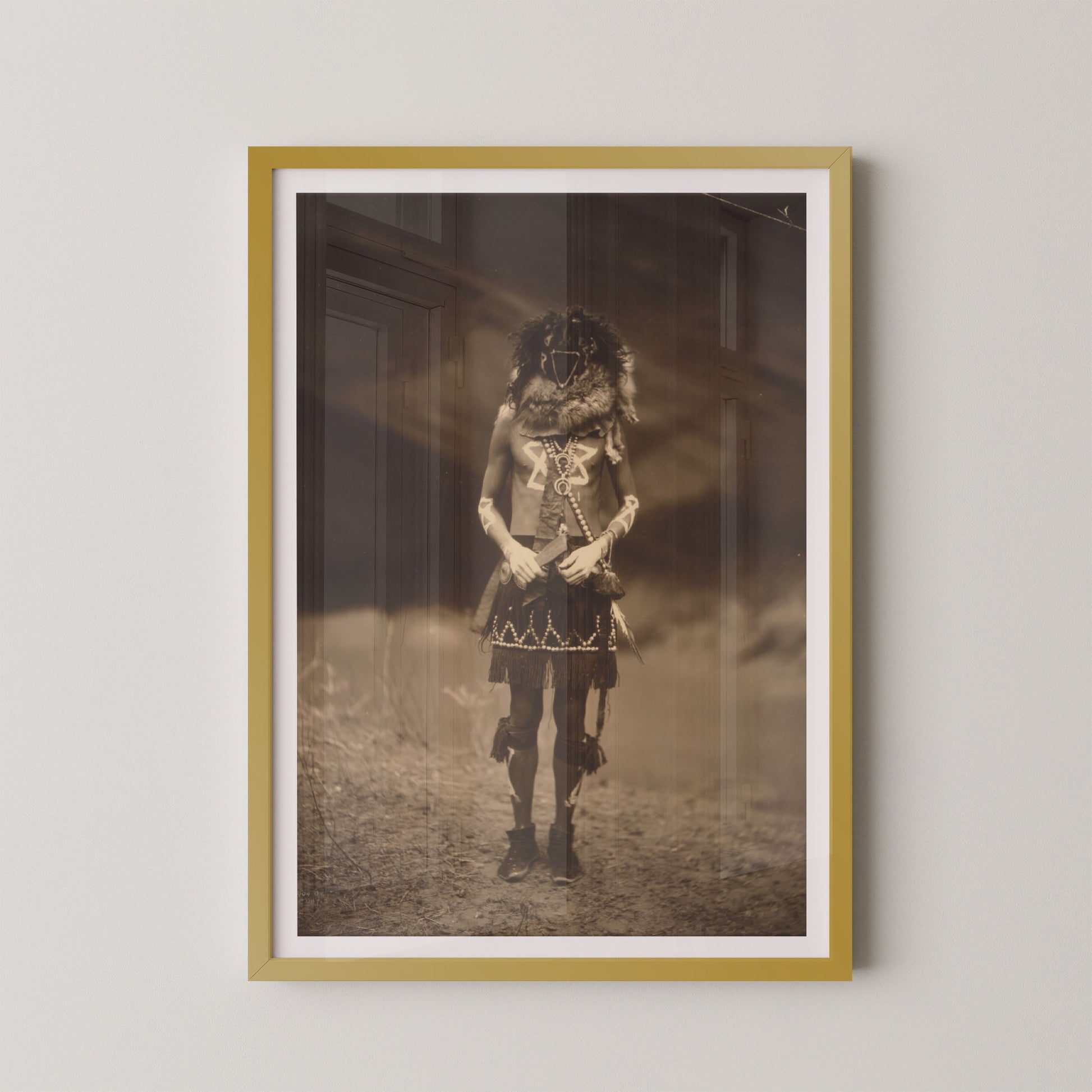 Nayenezgani IV is a powerful sepia-toned fine art photograph that captures an air of reverence, ritual, and craftsmanship. With its intricate textures, layered adornments, and balanced composition, this striking image conveys quiet intensity — a timeless reflection of artistry, symbolism, and spiritual connection to the natural world.