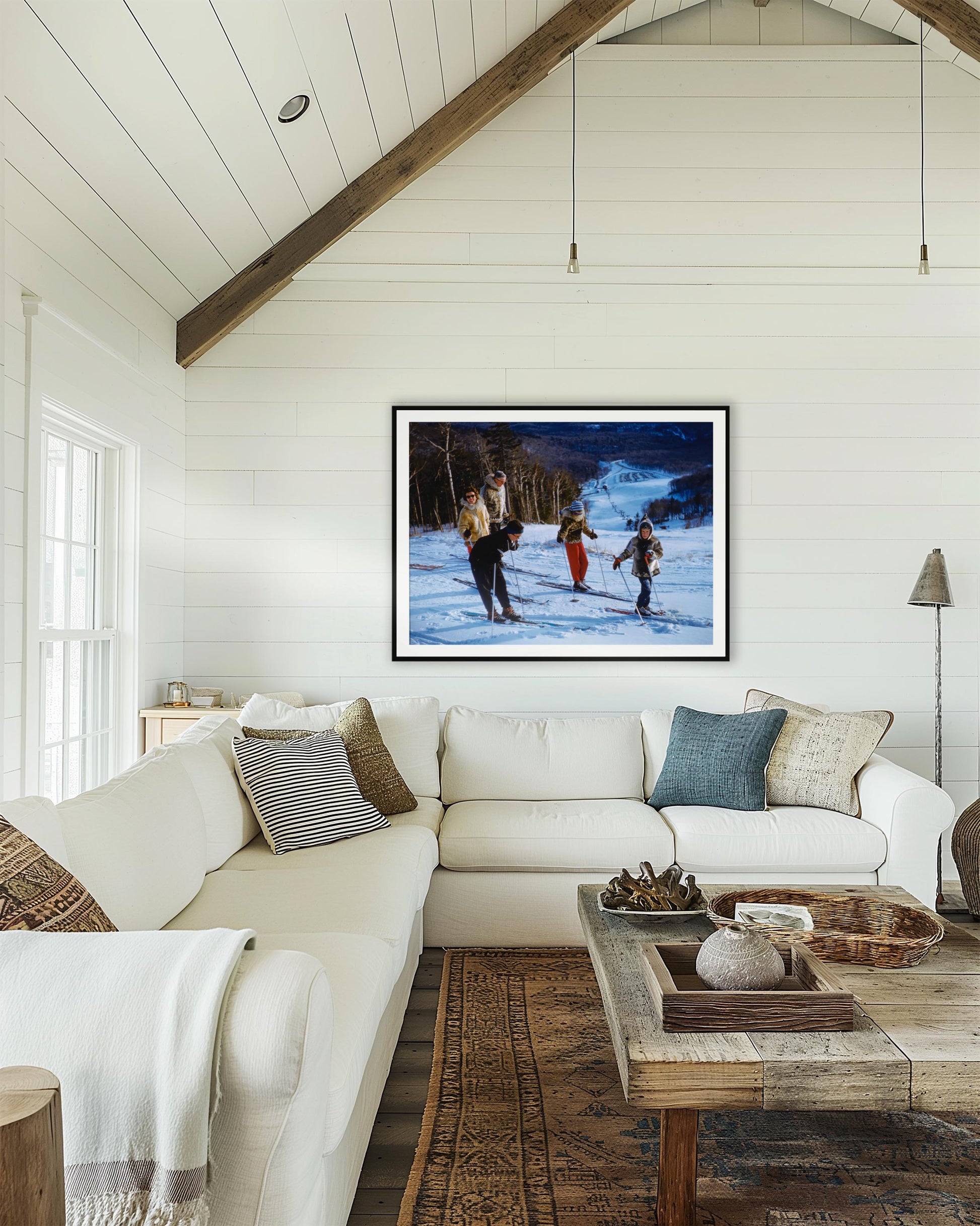Perfect for ski chalets, mountain homes, or Airbnb rentals styled with a nostalgic touch, On the Slopes adds warmth, color, and personality to your walls. It’s a timeless reminder of friendship, fun, and the thrill of downhill days beneath a blue winter sky.