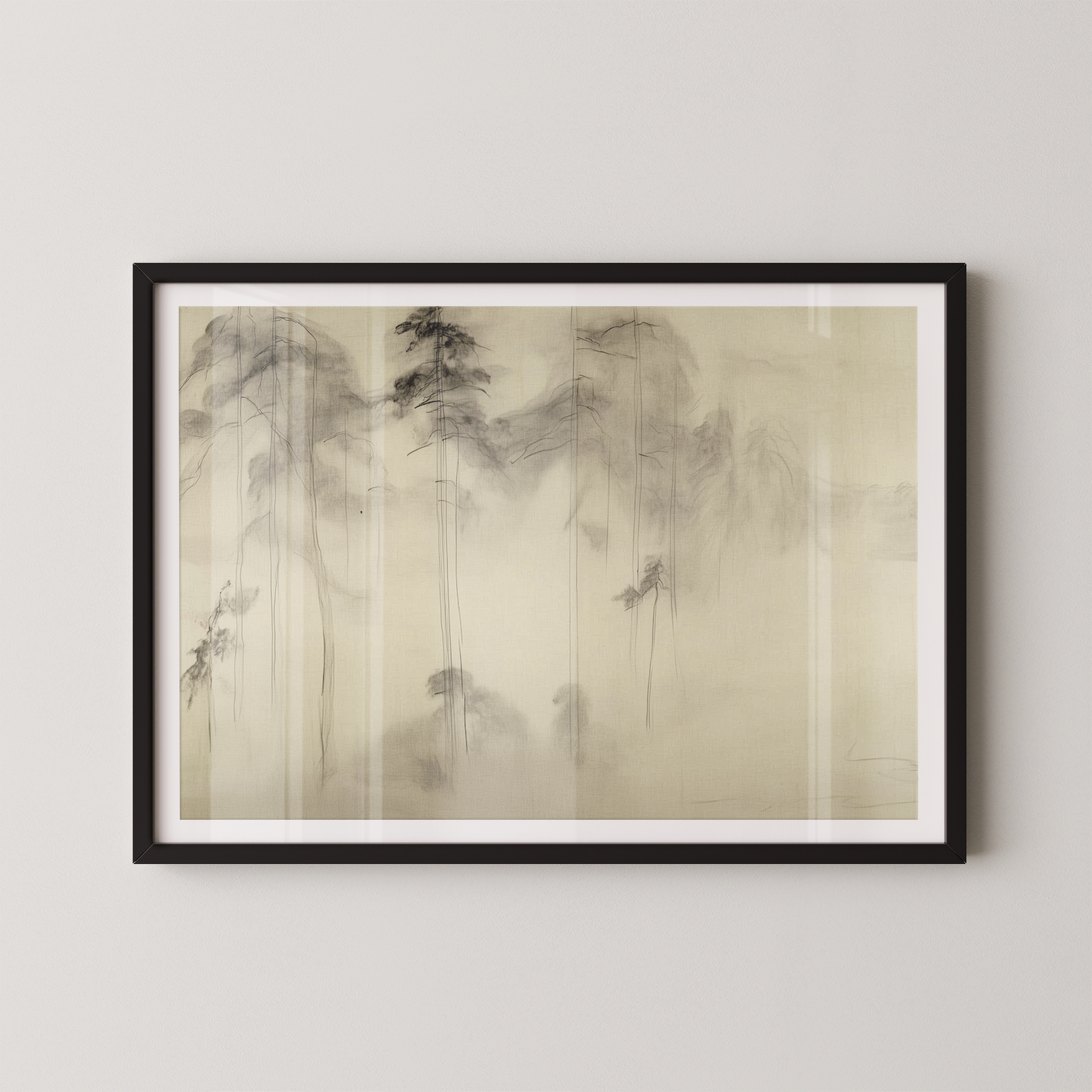 Embrace the beauty of simplicity with Wabi Sabi Forest I, a serene ink-style landscape that captures the quiet poetry of misty trees fading into soft neutral tones. Inspired by Japanese minimalism and the philosophy of wabi-sabi, this piece celebrates the elegance of imperfection, balance, and calm.